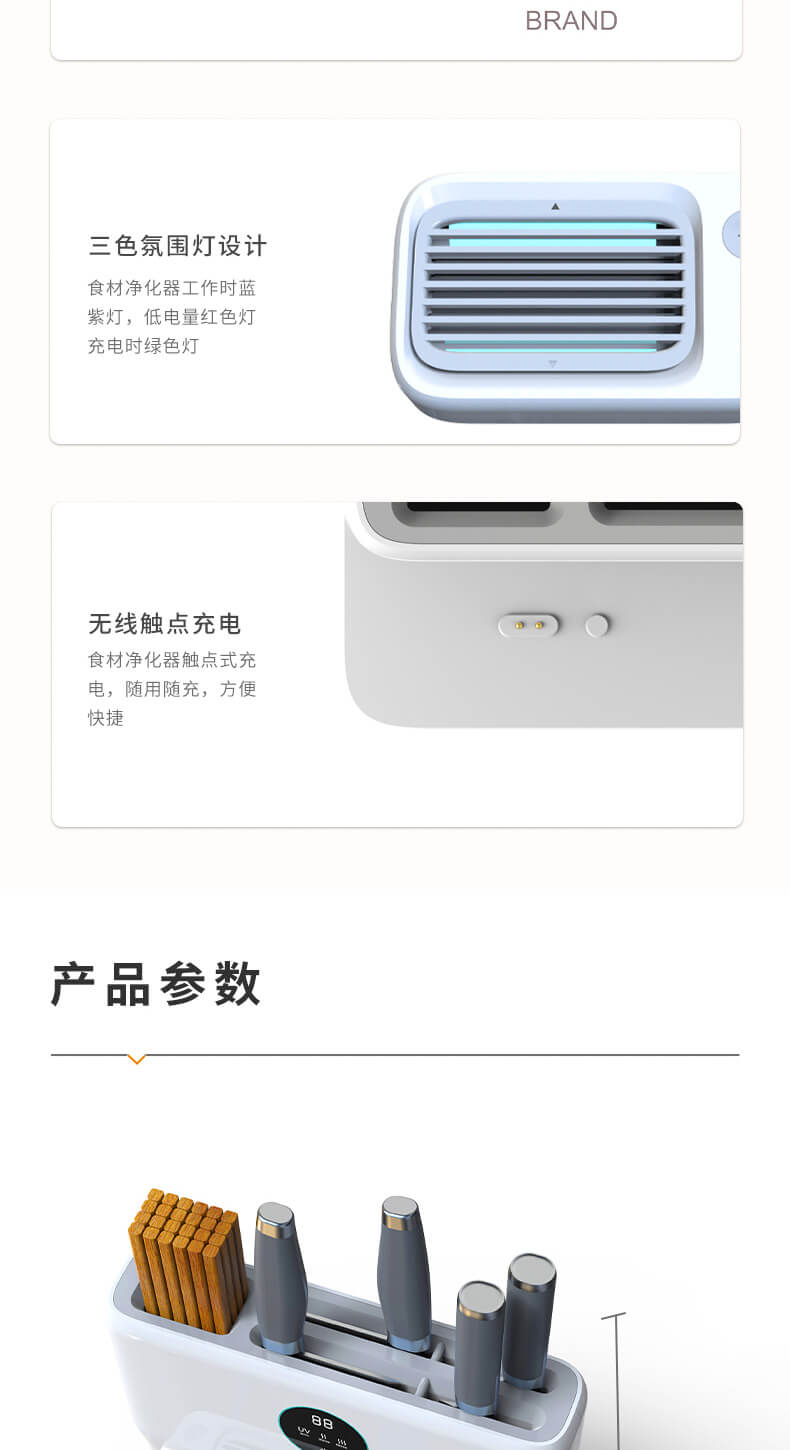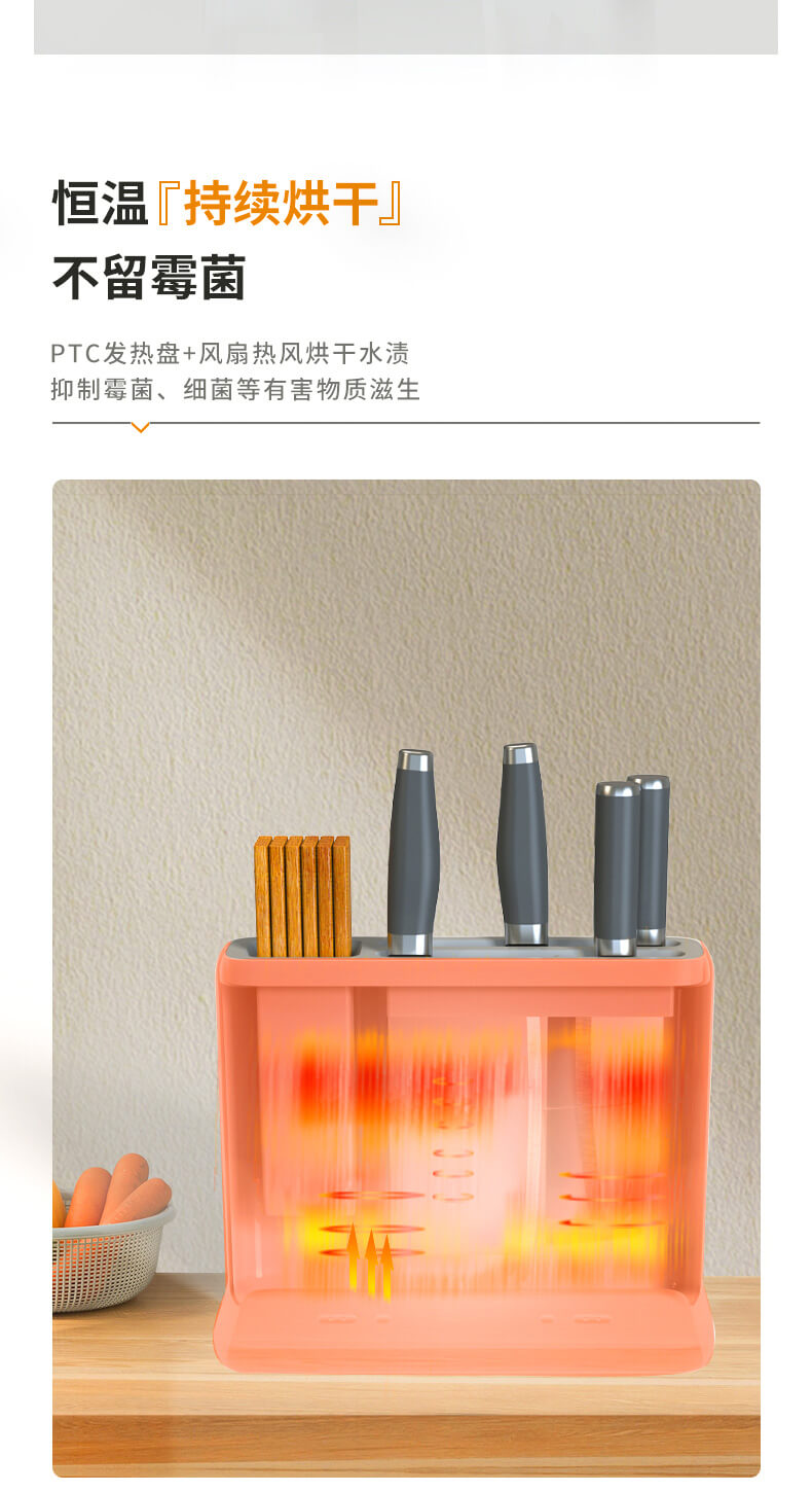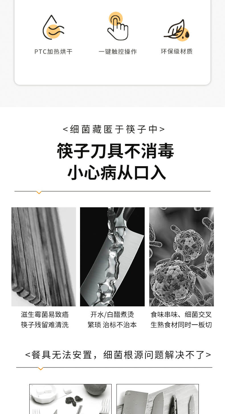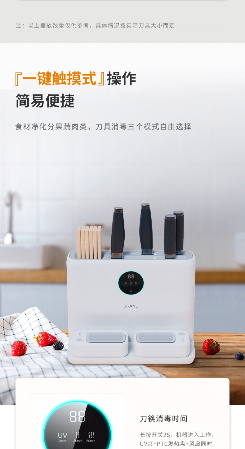 四、隱藏式無外泄UV燈,徹底消殺刀具、筷勺隱藏細菌,雙重烘干系統(tǒng),保障刀具筷勺不留水漬,抑制霉菌、細菌等有害物質(zhì)滋生;