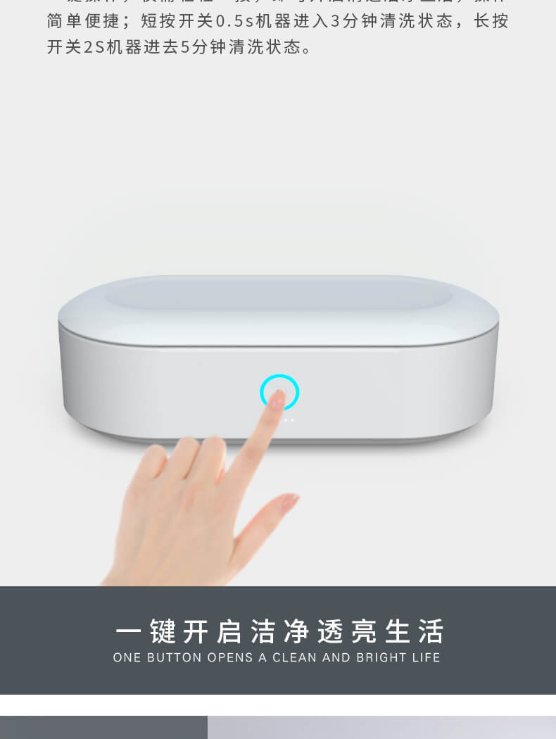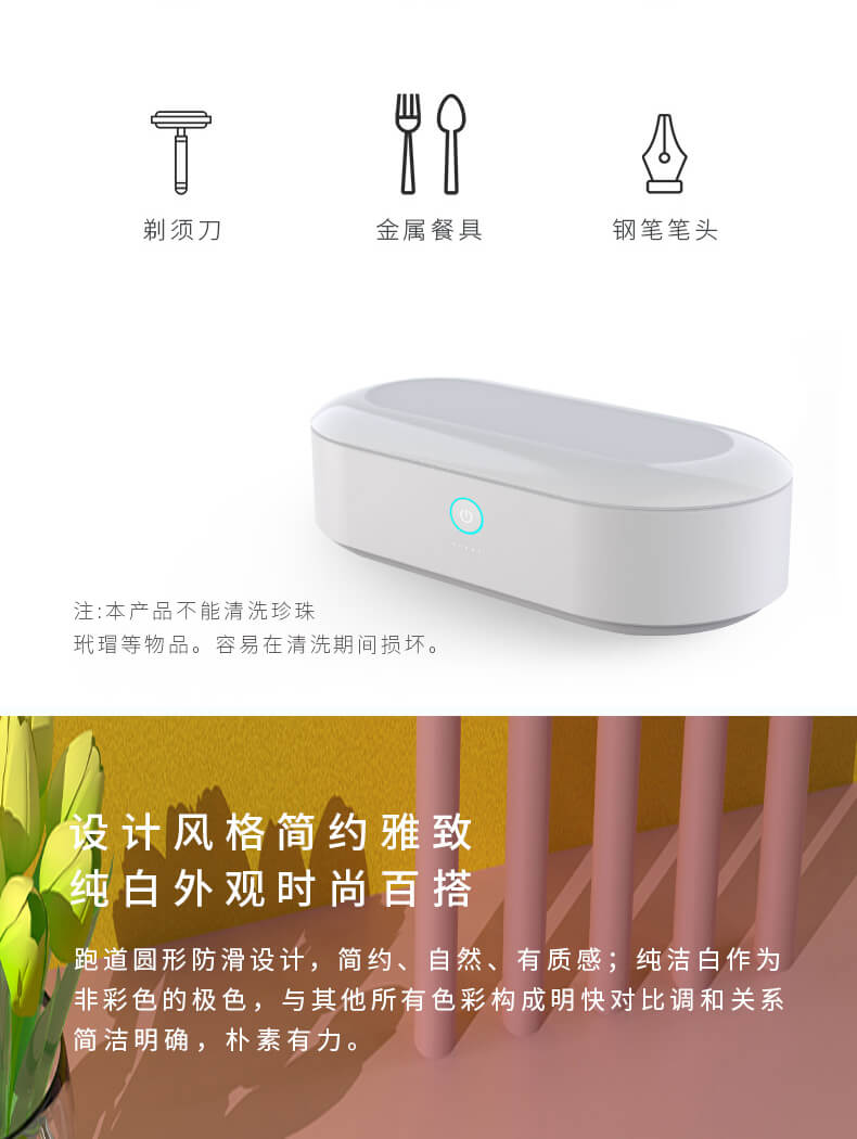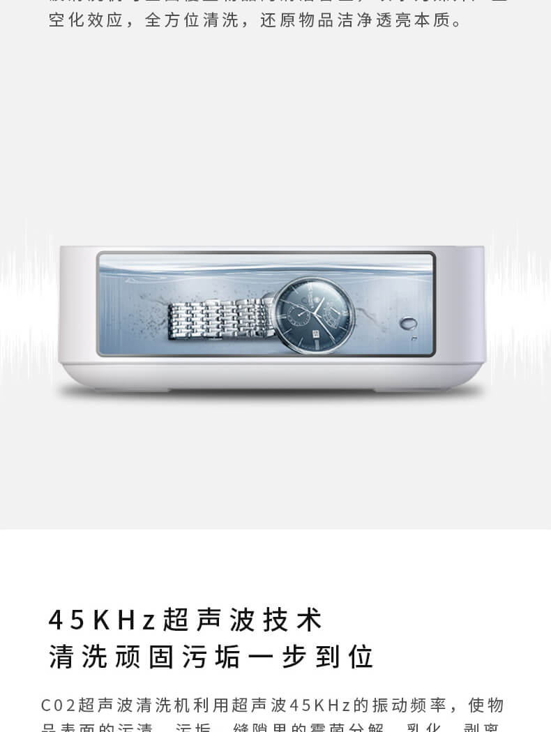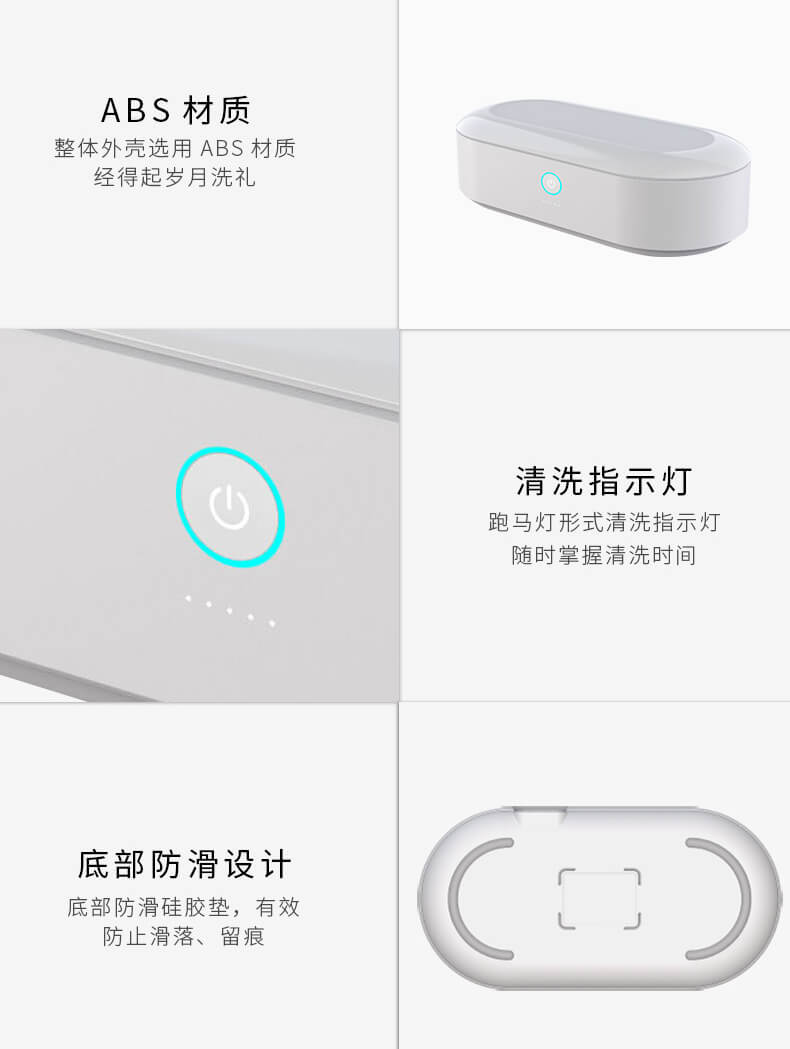 超聲波清洗機(jī)跑到圓形防滑設(shè)計(jì),簡(jiǎn)約、自然、有質(zhì)感;采用超聲波45KHz的振動(dòng)頻率,使物品表面的污漬、污垢,縫隙里的霉菌分解、乳化、剝離從而達(dá)到清潔效果。
