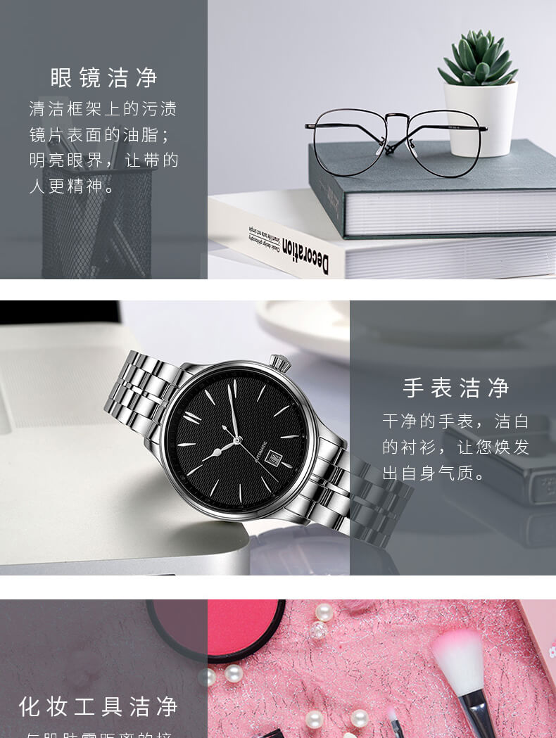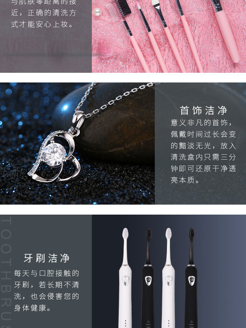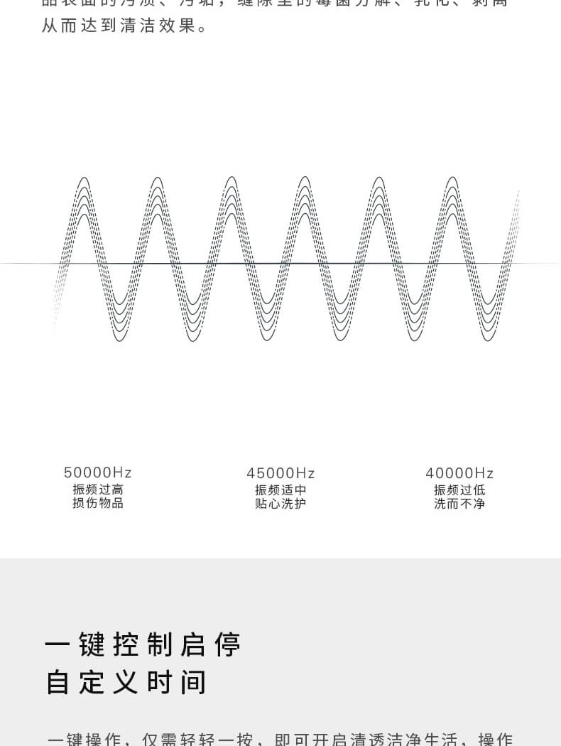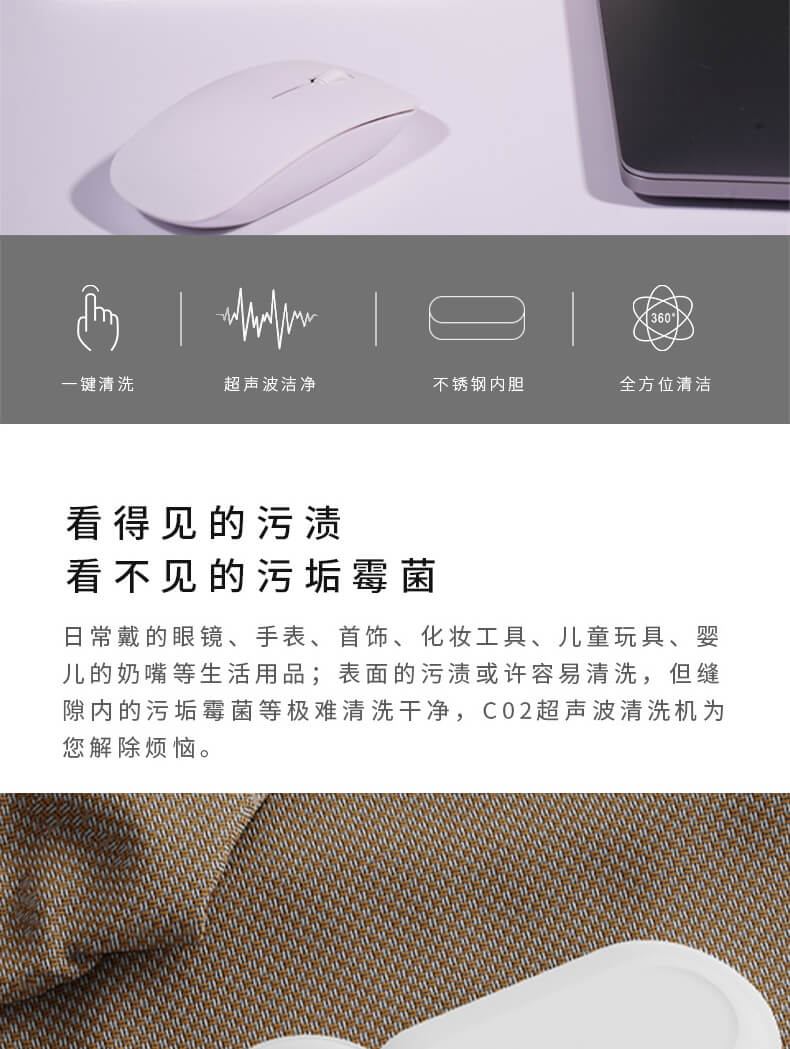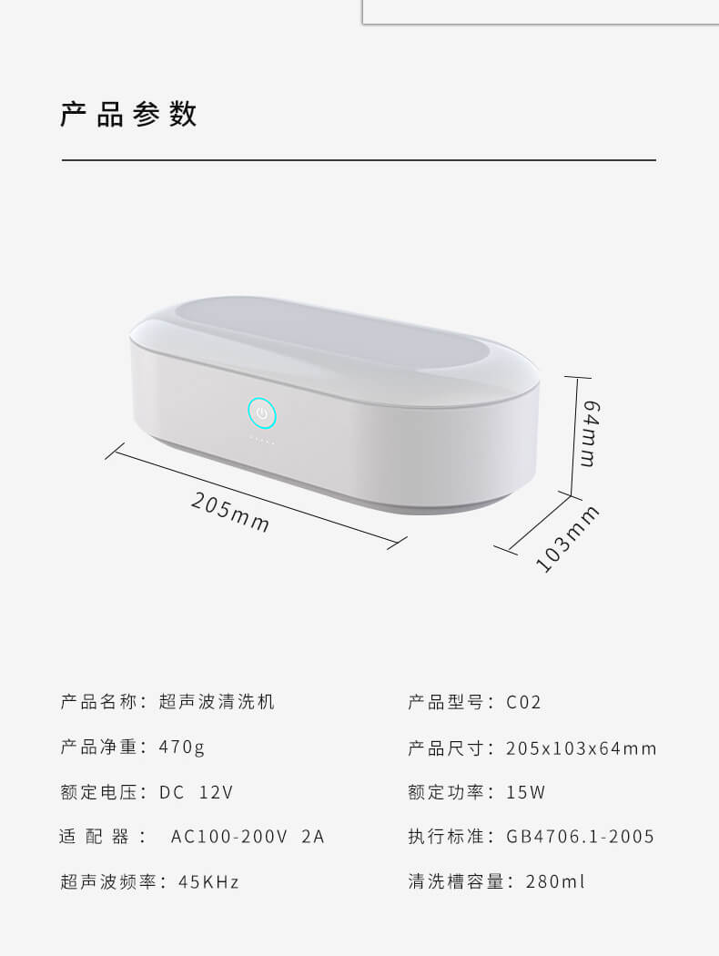 超聲波清洗機(jī)跑到圓形防滑設(shè)計(jì),簡(jiǎn)約、自然、有質(zhì)感;采用超聲波45KHz的振動(dòng)頻率,使物品表面的污漬、污垢,縫隙里的霉菌分解、乳化、剝離從而達(dá)到清潔效果。