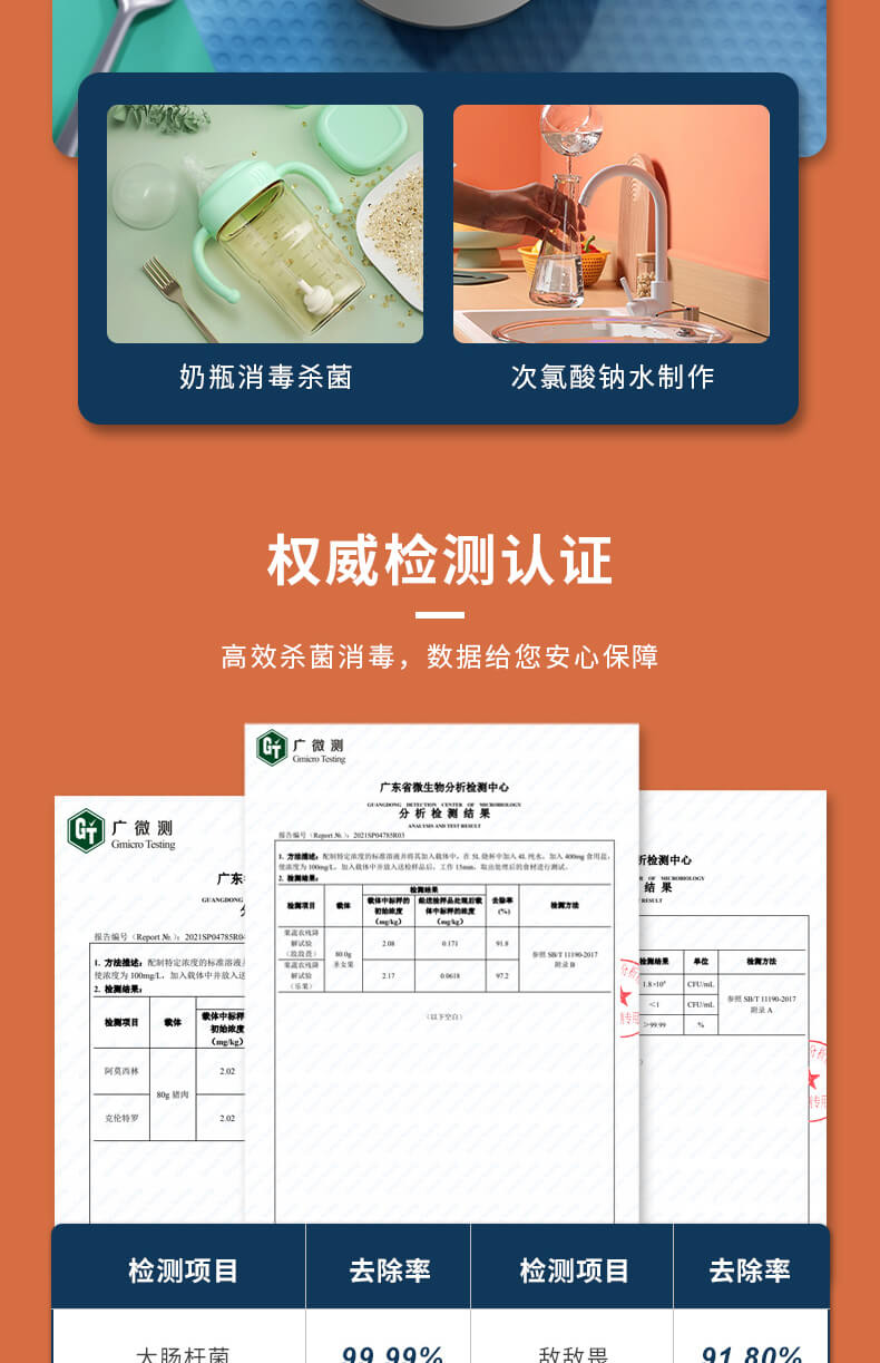 三、廣微測權(quán)威檢測認證,除菌率高達99.9%;