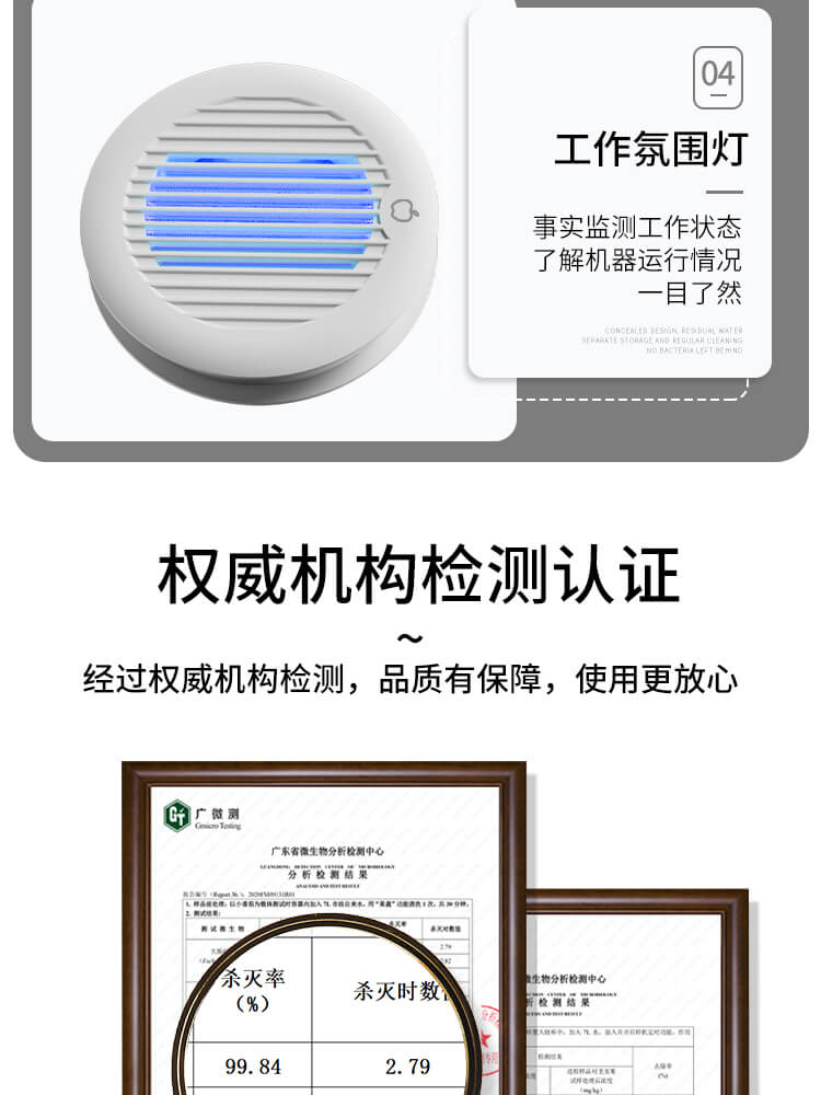四、廣微測權(quán)威檢測認證,除菌率高達99.9%;