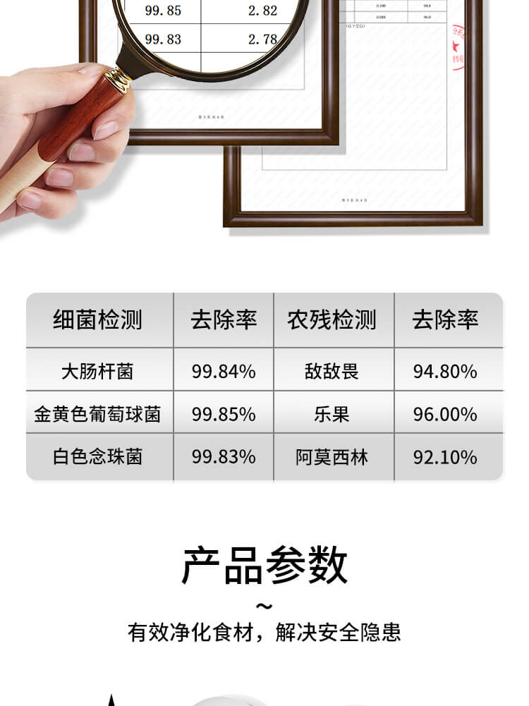 三、清洗效果肉眼可見,滅除常見細菌農(nóng)殘;