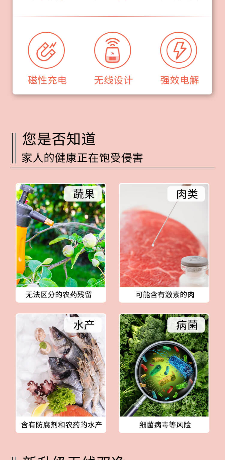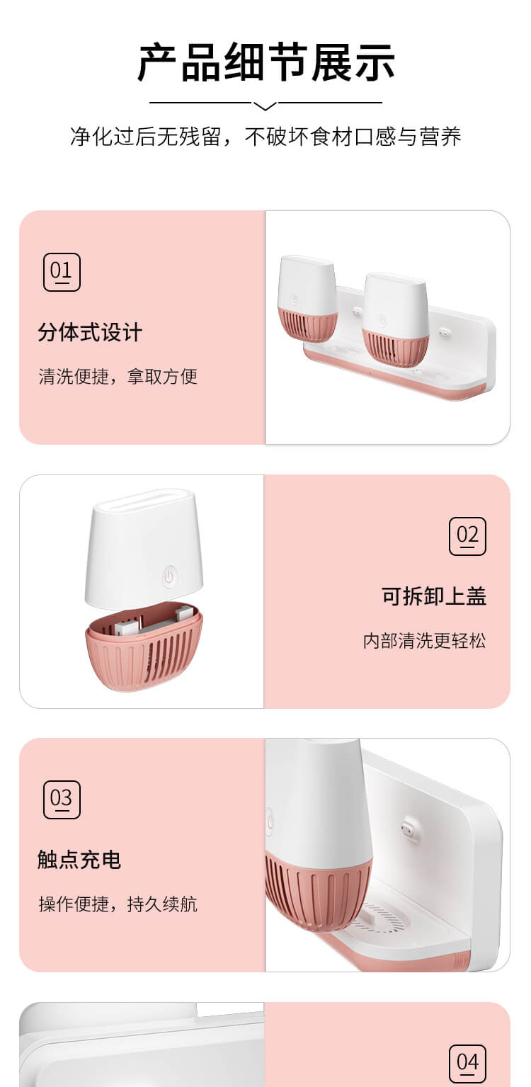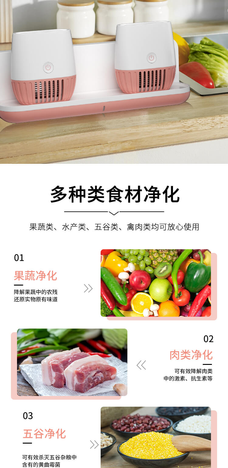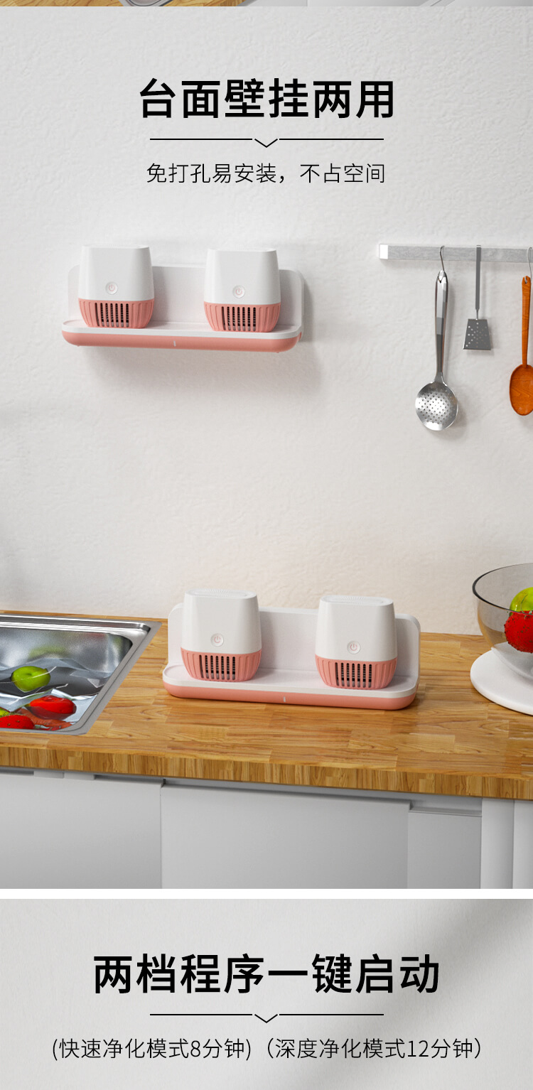臺(tái)面壁掛雙用途,免打孔背膠設(shè)計(jì),輕松掛在廚房任意角落,臺(tái)面放置小巧不占地方。無(wú)線雙倉(cāng)設(shè)計(jì),葷素雙凈同時(shí)啟動(dòng),專(zhuān)用果蔬、肉類(lèi)點(diǎn)解發(fā)生器,避免交叉感染,雙凈同時(shí)啟動(dòng),省時(shí)更高效。
