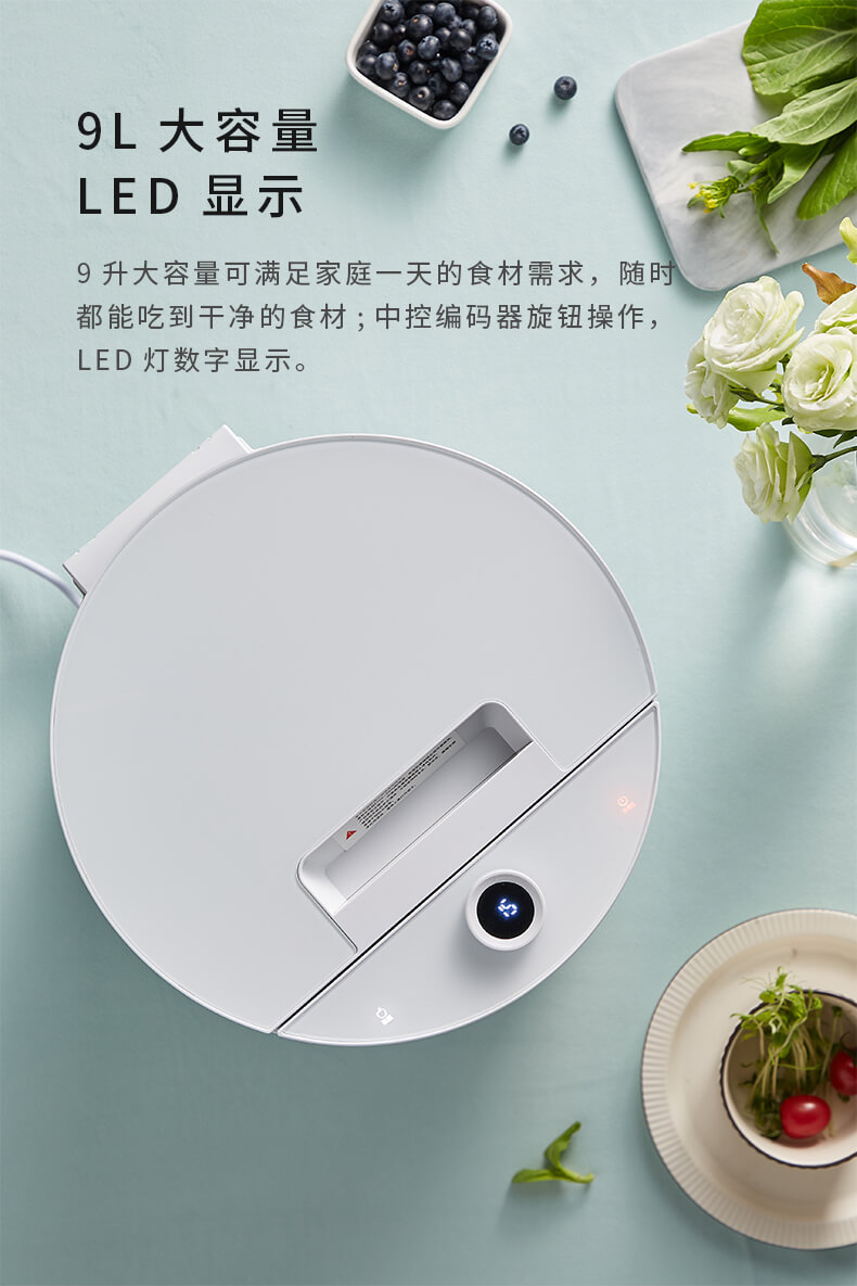 產(chǎn)品簡(jiǎn)介:STY06A果蔬清洗機(jī)滾筒式設(shè)計(jì),黑白灰外觀時(shí)尚百搭,作為非彩色的極色,純潔白+高級(jí)灰+剛毅黑三色與所有的色彩構(gòu)成明快的對(duì)比調(diào)和關(guān)系,簡(jiǎn)潔明確樸素有力。果蔬凈化機(jī)主要采用新技術(shù)羥基水離子和循環(huán)水泵凈化,多重方法清洗,高效殺菌降解農(nóng)殘。智能定時(shí)清洗,電腦控制時(shí)間,無(wú)需擔(dān)心時(shí)間不夠而導(dǎo)致食材清洗不干凈或時(shí)間過(guò)久,食材表面受損的問(wèn)題。八類凈化程序?yàn)槟邪鞔笄逑词澄?,一鍵控制八類清洗程序,根據(jù)實(shí)際情況選擇清洗模式,極簡(jiǎn)操作減少繁雜的使用步驟。